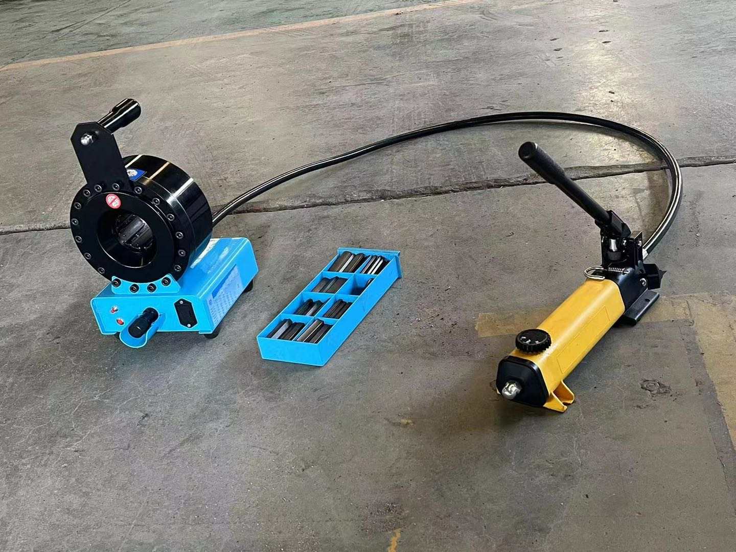 Hydrauliikkaletkupuristin 7-osaisella leukasarjalla kenttämalli